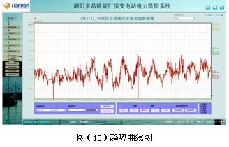 負fu荷he趨qu勢shi曲qu線xian界jie麵mian中zhong可ke直zhi觀guan的de查zha看kan回hui路lu的de負fu荷he運yun行xing情qing況kuang。查zha看kan實shi時shi和he曆li史shi趨qu勢shi曲qu線xian,點dian擊ji畫hua麵mian相xiang應ying按an鈕niu或huo菜cai單dan項xiang可ke以yi完wan成cheng相xiang應ying功gong能neng的de切qie換huan;幫助用戶進線趨勢分析和故障追憶,具備曲線打印功能。為分析整個係統的運行狀況提供了直觀而方便的軟件支持。見圖(10)。