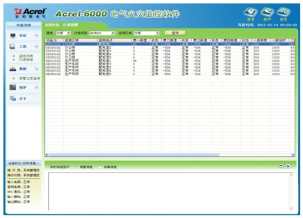 本套上位機軟件 Acrel-6000 電氣火災係統。主要有以下功能特點:友好的人機界麵,可實時和定時采集現場設備的剩餘電流數據和溫度、並有報警提示聲光報警等功能。客戶可根據實際需要對報警溫度值、漏電流值進行設置,報警故障解除時,可遠方進行複位。係統可對報警事件、日期、報警值、越線值進行記錄,並生成報表。