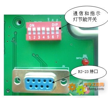 其中1~4 為通信部分,這一部分可以關閉通信部分的電源,5 為DATA(數據)指示燈開關,6 為NET(網絡)指示燈開關,7 為PWR(電源)指示燈開關。在低功耗應用時可全部關閉。