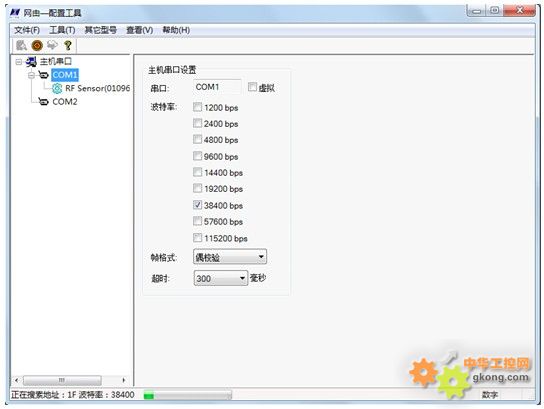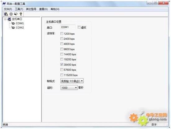 4、選擇您所使用的RS-232 接口,單擊它,配置串口參數,波特率38400,無校驗1 個停止位,超時600 毫秒,如圖6-3 所示;