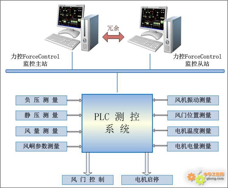 一、係統概述 主(zhu)通(tong)風(feng)機(ji)負(fu)責(ze)礦(kuang)井(jing)通(tong)風(feng),保(bao)障(zhang)礦(kuang)井(jing)的(de)安(an)全(quan)生(sheng)產(chan)。主(zhu)通(tong)風(feng)機(ji)的(de)運(yun)行(xing)情(qing)況(kuang)對(dui)整(zheng)個(ge)礦(kuang)井(jing)的(de)安(an)全(quan)生(sheng)產(chan)起(qi)至(zhi)關(guan)重(zhong)要(yao)的(de)作(zuo)用(yong),對(dui)其(qi)進(jin)行(xing)實(shi)時(shi)監(jian)測(ce)可(ke)以(yi)盡(jin)早(zao)發(fa)現(xian)故(gu)障(zhang),及(ji)時(shi)處(chu)理(li),有(you)效(xiao)保(bao)障(zhang)礦(kuang)井(jing)的(de)安(an)全(quan)生(sheng)產(chan)。因(yin)此(ci),建(jian)設(she)一(yi)套(tao)具(ju)有(you)完(wan)備(bei)監(jian)測(ce)功(gong)能(neng)的(de)風(feng)機(ji)在(zai)線(xian)監(jian)控(kong)係(xi)統(tong)是(shi)非(fei)常(chang)有(you)必(bi)要(yao)的(de)。 二、係統設計 礦井主通風在線監控係統的設計,主要從以下幾點考慮: 1、風機實時的運行狀態 係統通過對風機參數的監測,實時準確了解風機運行狀態、湧出量等,以及風機用電情況、軸承溫度、振動等情況。 2、可靠的報警功能 係統可具體設置參數闕值,對軸承溫度、風機振動等參數超過這一值時,及時給出聲光報警信號,便於及時處理。 3、提高設備管理水平 xitongjishilejiefengjiyunxingdengqingkuang,weiyouxiaobimianshebeiguzhangtigongkekaodejishubaozhang。jishitongjiyongdianqingkuang,weishengchanbumenjichengbenhesuanbumennidingjihuatigongdiyishoukekaodexinxi。 2.1 係統架構設計 主通風機在線監控係統以S7-300PLC為核心,主要由傳感器、電力參數采集模塊、PLC、上位機等組成。