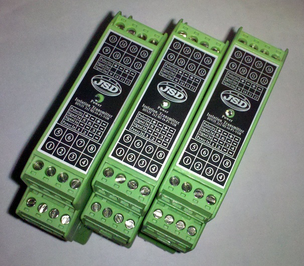 是將輸入的電量信號或物理量信號通過技術的方式處理後,隔離變換輸出一組或者多組標準的並成線性關係的模擬量直流電壓、電流信號,並且是呈線性比例關係的,信號輸入,信號輸出,工作電源之間是相互隔離的小型儀器設備。