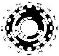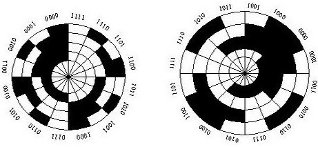 圖5四位二進製的碼盤 圖6四位二進製循環碼盤