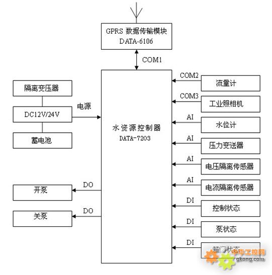 --應用範圍--- 該終端適用於從江河、湖泊和地下水取水的各類取水戶取水計量監控,包括城市水資源取用水監控、農村機井取用水計量監控等。 ---係統概述--- 取水計量監控技術是針對目前水資源取水過程存在的各種計量準確問題,將采用智能水表、電磁流量計、超聲波流量計等各種智能計量儀表,結合計算機、網絡通信和傳感開發的集成技術,對取水用戶實施水量自動監控。該技術實現了實時在線監測、數據統計與查詢、取水計劃管理與控製,從而為落實最嚴格的水資源管理製度提供技術支撐,促進水資源可持續利用和節約用水。 ---功能特點--- ◆ 采集各種脈衝表的流量數據。 ◆ 采集水位、水質變送器的標準信號。 ◆ 采集串口計量、測量儀表的數據。 ◆ 采集水泵閥門狀態,采集供電狀態和箱門開關狀態。 ◆ 數據超限或故障發生時,現場報警,支持遠程報警。 ◆ 自動控製水泵或閥門,實現允許取水或禁止取水。 ◆ 遠程控製水泵或閥門,實現允許取水或禁止取水。 ◆ 支持IC卡售水、支持遠程充值剩餘水量。 ◆ 支持GPRS方式通信。 ◆ 支持使用應急開關。 ◆ 存儲曆史數據。 ◆ 現場可顯示查詢監測數據、工作參數。 ◆ 配置備用電源,停電後可繼續工作。 ◆ 支持多中心監控。 ◆ 通過河北省電子產品監督檢驗所檢驗。 ◆ 通過了國家水利部水資源監測數據傳輸規約(SZY206-2012)檢測。 ◆ 支持山西、浙江、遼寧等許多地區水資源管理通信協議要求。 ---技術指標--- ◆ 采集誤差:模擬量:≤0.5%;脈衝量:≤1‰。 ◆ 通信誤差:≤10-6。 ◆ 工作環境:溫度:-40~+85℃;濕度:≤95%無凝露;無腐蝕、無爆炸環境。 ◆ 供電電源:220±20%VAC;支持380VAC。 ◆ 設備功耗:普通型≤8W ,低功耗型≤1W。 ◆ 設備結構:室內型、室外型。 ◆ 外型尺寸:480mm×360mm×200mm;600mm×450mm×300mm或其它尺寸可選。 ---原理示意---