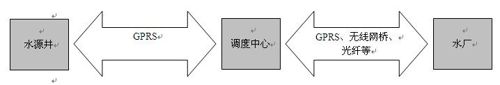 方式二、所有水源井直接與調度中心通信,水廠通過訪問調度中心與下屬水源井進行通信。