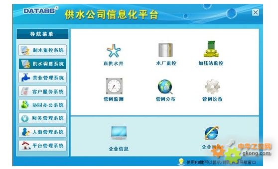 ---調度係統軟件功能--- 供水調度係統采用B/S或B/S+C/S結構設計,軟件在調度中心服務器上運行,管理人員通過自來水公司局域網瀏覽並進行相應操作,供水調度係統主要功能如下: