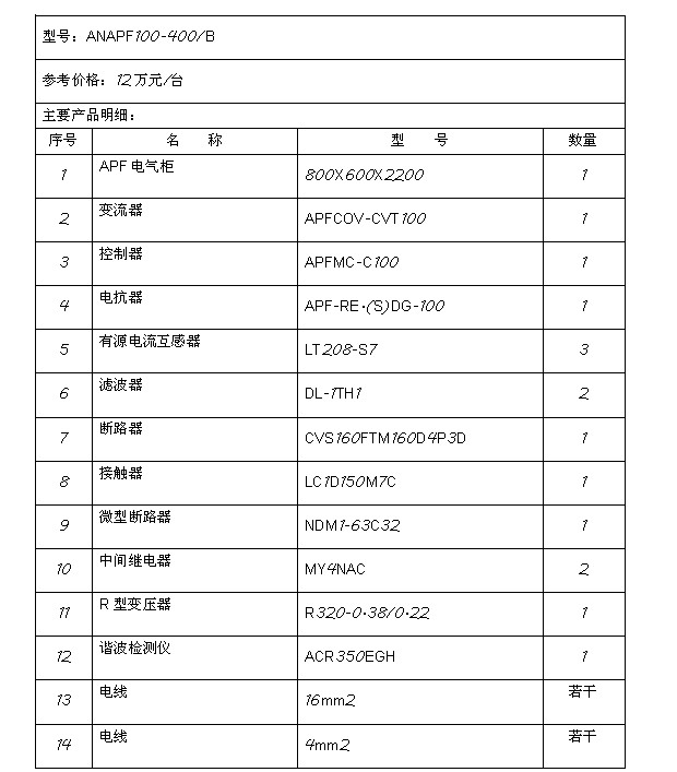 5 ANAPF低壓有源濾波器報價及主要元件清單