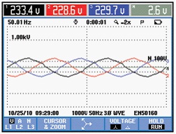 圖2 有源濾波器投入前相電壓波形 圖3 有源濾波器投入後相電壓波