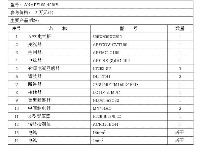 3.2 ANAPF有源電力濾波裝置的技術參數
