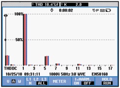 以下是ANAPF有源濾波器投入前後的現場對比數據: 1)三相電壓波形前後對比,見圖2、圖3。 2)三相電壓諧波含量前後對比,見圖4、圖5。 3)三相電流波形前後對比,見圖6、圖7。 4)三相電流諧波含量前後對比,見圖8、圖9