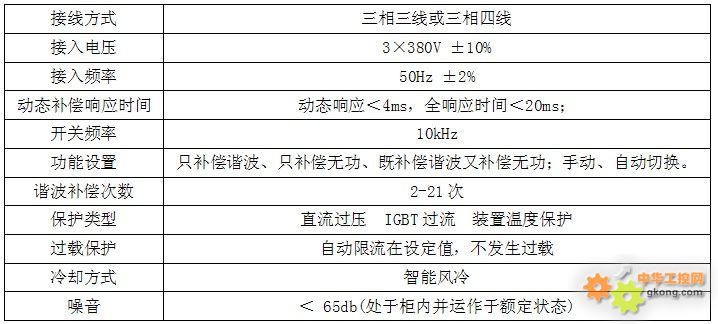 13波補償前電流頻譜圖 13波補償後電流頻譜圖 1.5治理效果 在10kV母線4段和5段使用兩套有源電力濾波器裝置進行治理後,係統諧波得到了很好的抑製,完全將11次、13次ci諧xie波bo限xian製zhi在zai國guo家jia標biao準zhun的de範fan圍wei內nei,提ti升sheng供gong電dian係xi統tong的de供gong電dian可ke靠kao性xing,消xiao除chu了le係xi統tong諧xie波bo對dui電dian網wang係xi統tong影ying響xiang的de隱yin患huan,收shou到dao了le良liang好hao效xiao果guo,達da到dao改gai善shan電dian網wang電dian能neng質zhi量liang的de目mu的de。 2、ANAPF有源濾波器簡介 2.1技術參數