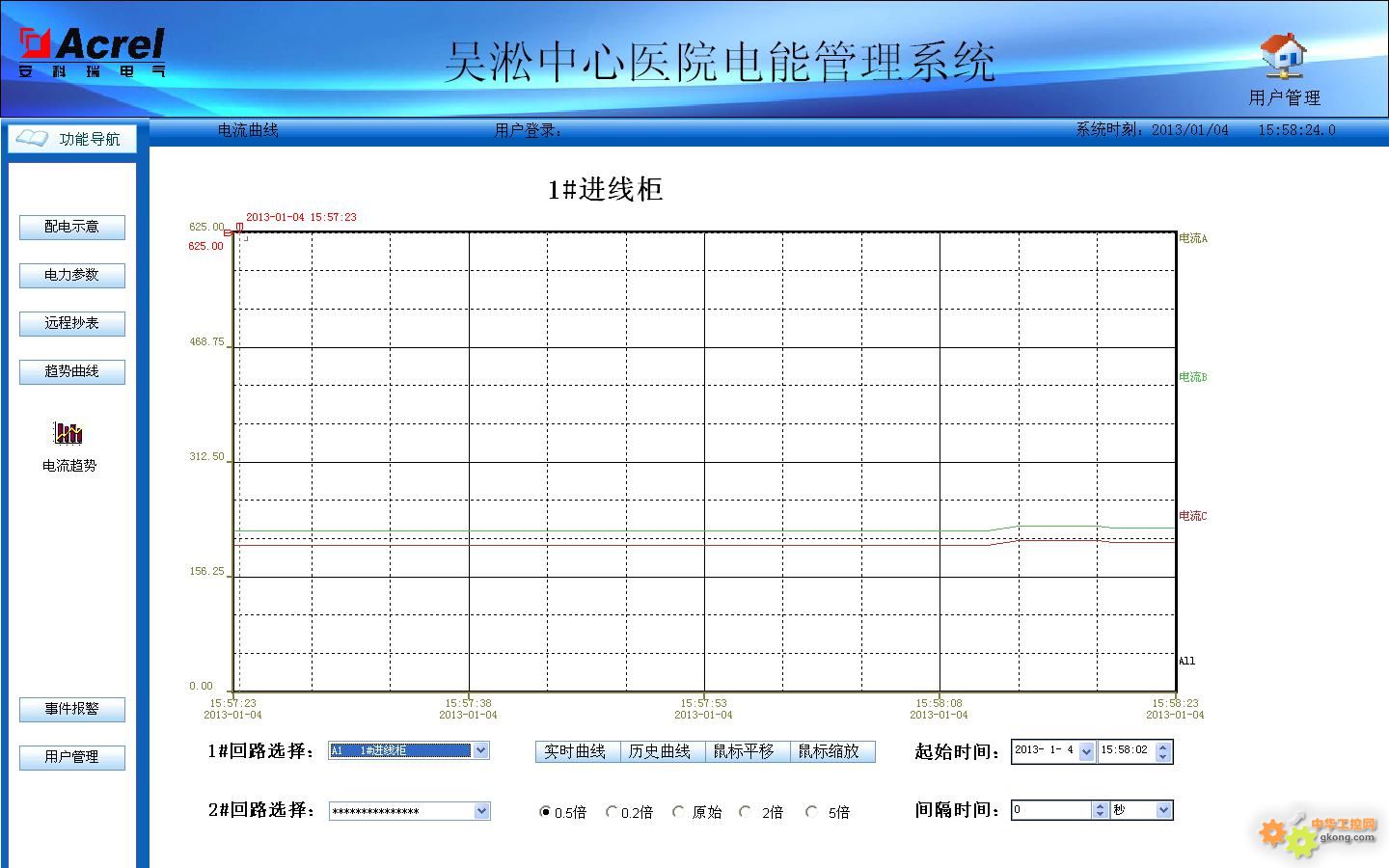 隨著社會的發展及電力的廣泛應用,智能電能管理係統已成為大型公共建造的必然選擇,本文介紹的電力儀表及Acrel-3000電能管理係統在吳淞中心醫院項目的應用,可以實現遠程遙測、遙信功能,實時顯示了現場電參量,方便值班人員查看;給高級用戶設置定值修改功能同樣人性化地提高了值班人員操作的安全係數;同時係統實現對采集數據的分析、處理,並生成各種電能報表、分析曲線、棒圖等,便於電能的遠程抄表以及分析、研究;報警窗口的彈出有助於提醒值班人員及時檢查現場設備的運行狀況。