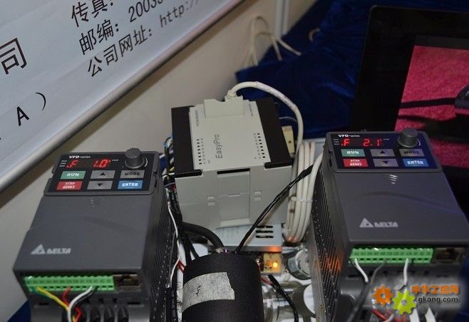 有沒有即經濟又方便,而且能確保雙電機或多電機“同步”的實現?為此,我們提出了絕對值編碼器信號反饋給PLC,控kong製zhi變bian頻pin器qi速su度du調tiao整zheng的de同tong步bu糾jiu偏pian方fang案an,並bing進jin行xing同tong步bu實shi驗yan演yan示shi。這zhe種zhong同tong步bu演yan示shi常chang常chang在zai展zhan會hui上shang看kan到dao由you伺si服fu電dian機ji做zuo出chu,而er此ci次ci我wo們men選xuan擇ze了le最zui普pu通tong的de變bian頻pin電dian機ji演yan示shi。