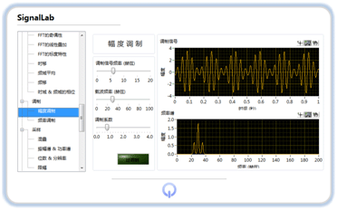 在本軟件中,老師可以在課堂上隨意地展示各種與信號處理相關知識點的概念演示程序。(如:圖3是nextpad中的SignalLab界麵,您也可在優酷網站中搜索SignalLab,直接觀看本程序的視頻演示)。一方麵,教師通過波形圖、按鈕等易於理解和操作的形式,可以讓學生更直觀地看到各種信號處理所得到的結果是怎麼樣的;另(ling)一(yi)方(fang)麵(mian),教(jiao)師(shi)也(ye)可(ke)以(yi)很(hen)簡(jian)單(dan)地(di)改(gai)變(bian)整(zheng)個(ge)演(yan)示(shi)中(zhong)的(de)各(ge)種(zhong)參(can)數(shu),讓(rang)學(xue)生(sheng)即(ji)時(shi)了(le)解(jie)到(dao)參(can)數(shu)的(de)變(bian)化(hua)對(dui)所(suo)得(de)到(dao)結(jie)果(guo)的(de)影(ying)響(xiang),從(cong)而(er)讓(rang)學(xue)生(sheng)以(yi)一(yi)個(ge)麵(mian)的(de)角(jiao)度(du)去(qu)了(le)解(jie)知(zhi)識(shi)點(dian),並(bing)有(you)利(li)於(yu)學(xue)習(xi)效(xiao)率(lv)的(de)提(ti)升(sheng)。從(cong)這(zhe)個(ge)例(li)子(zi)中(zhong),我(wo)們(men)可(ke)以(yi)充(chong)分(fen)地(di)理(li)解(jie)到(dao)直(zhi)觀(guan)和(he)互(hu)動(dong)對(dui)工(gong)程(cheng)教(jiao)育(yu)效(xiao)果(guo)的(de)價(jia)值(zhi)所(suo)在(zai)。