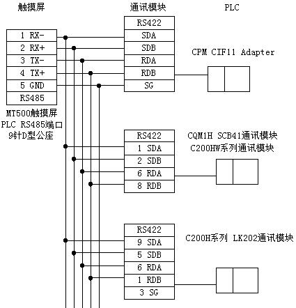 2、連接PLC的通信口為RS-422、485(例如三菱PLC),示意圖如下 接各種類型PLC 觸摸屏之間互聯的連線方式: 連線方式1: