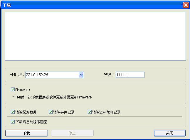 MT8000係列人機帶有以太網接口,通過Ethernet網絡,可以實現對遠程人機或者PLC數據的監控,同時也可以實現對遠程MT8000人機下載程序。 MT8000遠程監控係統的結構圖如下:  其中,MT8000人機上可以連接多種控製器。 實現MT8000的遠程監控功能,首先要對被訪問的MT8000人機所在的局域網的路由器進行設置,方法如下: 1.MT8000的IP設置 觸摸機器的右下角,會在機器底部出現一條工具欄,左麵有4個圖標,如圖示  點擊第四個“System Setting”圖標,輸入密碼後(默認密碼111111),出現如下圖所示對話窗口: 在“Netword”一欄中,設定機器的IP地址,完成後保存確定即可。建議設定後重啟一下機器再下載程序。 同時,在EB8000軟件中,設置MT8000的端口號,如下圖所示,可以設為8000.  2.路由器的設置 通過設置路由器,將8000端口號映射到MT8000人機的IP地址上。以TP-LINK路由器為例介紹設置: 在IE地址欄中輸入IP:192.168.1.1,彈出窗口如下圖所示:  輸入路由器對應的用戶名和密碼後,進入路由器的設置界麵,將虛擬服務器設置成如下圖所示,即將端口8000映射到MT8000的IP地址,同時將下載的20248端口也映射到MT8000的IP地址。  路由器設置完成後,保存退出就可以了。 同時,也要注意查看一下外網的IP,此時IP為:221.0.152.26。 3.MT8000遠程監控 打開EB8000軟件,新建一個程序,此程序即用來模擬監控遠程人機的數據。係統參數設置如下:  添加完遠程MT8000人機的設備清單如下圖所示:  然後,在EB8000的編輯界麵中,設置2個元件: 位狀態切換開關,設置如下圖所示:  注意:PLC名稱處,選擇的是遠端人機對應的名稱。 再放置一個數值輸入元件,如下圖所示:  注意:PLC名稱處同樣要選擇遠端人機對應的名稱。 設置完成後,既可保存編譯程序,執行離線模擬或者在線模擬,當切換LB0的狀態時,遠端MT8000人機上的LB0的狀態會對應的改變;當在電腦上對LW0輸入一個數值時,在遠端的MT8000人機上的LW0地址會顯示電腦上輸入的數值。相反地,也可以在電腦上查看遠端MT8000人機上的數據變化。 至此,即實現了MT8000的遠程監控功能。 4.MT8000遠程下載和上傳 在遠端MT8000人機所在局域網的路由器已經設置好的基礎上,即可開始遠程下載和上傳操作了。 在電腦上打開EB8000軟件,在“Project Manager”窗口上,點擊“下載”按鈕,出現如下圖所示對話框,  [Firmware]一般第一次下載時會選中 [工程文件]要下載到遠端MT8000 人機中的XOB文件所在路徑 [配方數據RW]如果有此配方文件,需要選中 [配方數據RW_A]如果有此配方文件,需要選中 [資料取樣記錄]如果有此資料取樣記錄文件,需要選中 [HMI IP]此處填寫遠端MT8000 人機的IP地址,為:221.0.152.26 [下載完成後自動重啟觸摸屏]如果此項被勾選,程序下載完成後會重啟觸摸屏 [清除配方數據]如果此項被勾選,下載程序前會將機器中的所有配方數據清除為0 [清除事件記錄]如果此項被勾選,下載程序前會將機器中的所有事件記錄文件event log清除 [清除資料取樣記錄]如果此項被勾選,下載程序前會先清除機器上存在的所有Data log文件 設置完成後,點擊“開始下載”,出現提示程序下載進度的對話框,當最後顯示“完成”時,即程序已下載完畢。 也可以在EB8000軟件的編輯界麵中,點擊 執行下載,設置窗口如下所示:  無論哪種路徑下載,下載進度的提示信息都是相同的。 如果是遠程上傳,則在EB8000的“Easy Manager”窗口上點擊“上傳”按鈕,出現下圖所示的對話框:  [工程文件]選擇好將上傳的XOB文件保存在電腦的哪個路徑下麵 [HMI IP]即遠端MT8000人機所在局域網的外網IP,此處為:221.0.152.26 設置好,點擊“上傳”按鈕,程序開始上傳。
