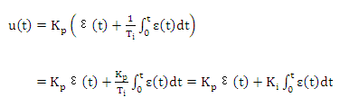 由於P控製存在穩態誤差需要手動複位,人們發現可以通過引入一個積分項來消除穩態誤差。積分控製器的輸出與誤差信號的積分成正比,即  ,所以PI控製器的輸出有:
