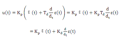 積分控製的動態性能不好,而微分項恰好可以彌補這點。微分控製器的輸出和誤差信號的微分成正比,即  ,所以PD控製器的輸出有: