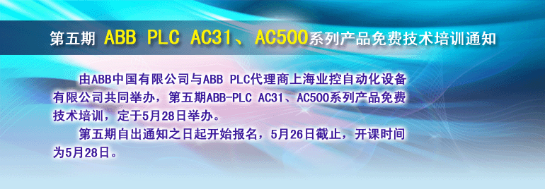 授課老師:ABB公司及業控公司高級工程師 培訓內容:1、AC31、AC500PLC產品的特點 2、AC31、AC500PLC硬件網絡結構 3、用PS501進行AC500PLC組態和編程 4、AC500 和FameView組態軟件的通訊特點