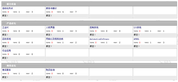 | 論壇由綜合信息、產品論壇和商務論壇三個部分組成,產品論壇中又根據貝加萊(B&R)的產品分類分成工業PC、人機界麵、控製係統等9個分論壇,商務論壇也分成售後服務和購買谘詢兩部分,這些均保證了貝加萊(B&R)在任何時候對您的要求和建議作出最快的回應。 |