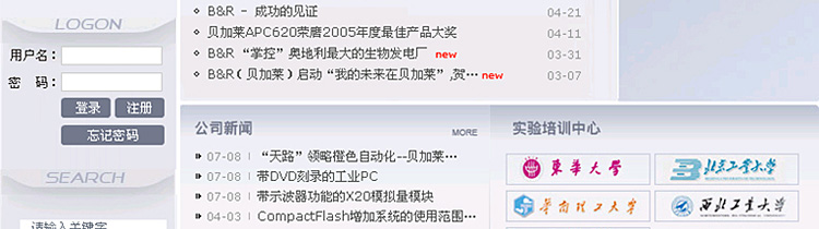 貝加萊學界聯盟網站由以下幾部分組成:新聞動態、實驗培訓中心、人才培養、論文資料和在線論壇。