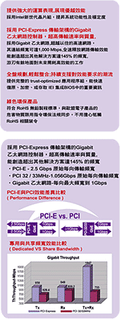 ● 提供強大的運算能力,展現優越的效能 采用Intel新一代芯片組,提升係統功能性及穩定度 ● 采用Gigabit 以太網絡,超越以往的高速網絡,其連接帶寬可達1,000 Mbps,全速釋放網絡傳輸效能 采用 PCI-Express 傳輸架構的Gigabit 以太網控製器,提供超高傳輸速率與質量,能創造出超越其它解決方案達145% 的帶寬,遊刃有餘地麵對未來需耗高效能的工作 ● 全盤規劃,輕鬆整合,持續支持對效能要求的潮流 提供完整的 trust-optimized 應用程序組,能快速複原、加密、或存取 IEI 集成BIOS中的重要信息 ● 綠色環保產品 符合 RoHS 無鉛製程標準,與歐洲環保製程規範同步,與歐盟電子產品的危害物質限用指令環保法規同步,不用擔心抵觸RoHS 相關禁令