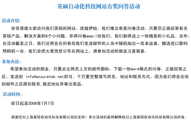公司名稱:上海英碩自動化科技有限公司 電話:64411698 / 方立新 傳真: