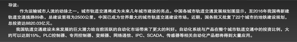 北京四方研發中心軌道交通集成部經理周雲蔚:“當前在牽引直流測控保護裝置、綜合監控軟件平台等受國外壟斷的城市軌道交通機電設備方麵,四方也在不斷加大科研投入,為提高的國產化率、降低工程造價及為用戶取得更大的利益而努力。隨著產品技術的成熟、可靠性的提高,加之價格優勢及優質的服務,同類國內產品將會得到軌道交通用戶的認可而大量應用。” |