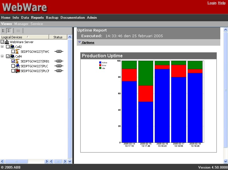 - 報告模塊。WebWare報告模塊提供一個用於生產統計數據自動采集、報告的現成解決方案。