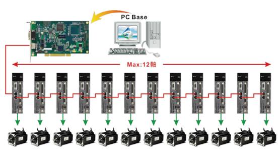同步通訊架構:一張卡可在1ms內同步處理12軸伺服電機