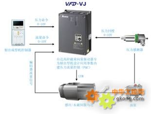伺服驅動器從注塑機控製器獲得壓力機流量命令後,與實際壓力和轉速反饋進行PID運算,計算出最適合的控製量來驅動伺服電機與油泵,因此控製係統響應快、重複精度高。