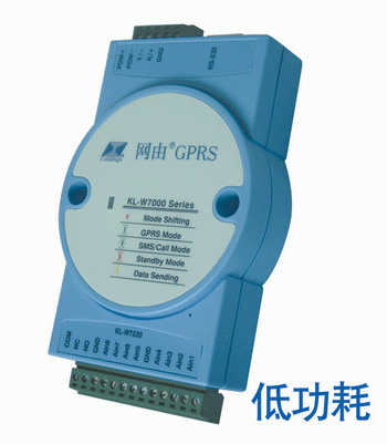 網由KL-W7523低功耗GPRS/GSM數據采集模塊是標準KL-W7000模塊的一款升級產品,它除了保留原有模塊的一些基本功能外,最優越的特性表現為低功耗設計。KL-W7523模塊單機待機功耗僅80μA左右,因此非常適合於各種電池供電,兼有本身就具備GPRS/GSM通訊,這樣就真正實現了“無線”通訊,解決了無供電電源現場監控的難題。