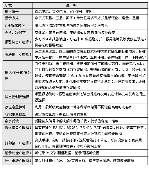 ・適用於各類標準電壓、電流和mV、電阻等液位輸入信號類型