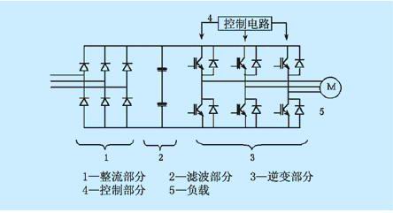 變頻器主電路原理如下圖表示,一般分為整流部分、濾波部分和逆變部分及控製部分。
