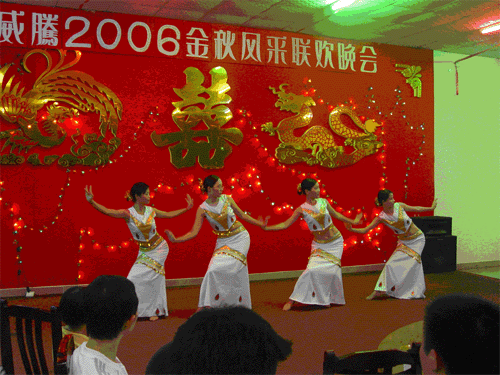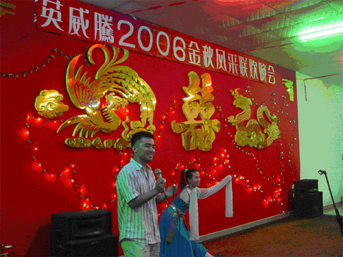 製造部員工的獨唱《留什麼給你》與街舞《街舞少年》,還真有點明星風采,深情的歌唱,勁爆的舞姿贏得全場的呼聲和呐喊;市場部美女助理的獨唱《望月》,婉轉悠揚,令人陶醉與難忘;由各部門美女組合集體舞蹈《青春舞動》,顯示出英威騰人蓬勃活力與生機;在晚會所有節目中,製造部的大合唱《團結就是力量》表演者最多,站滿舞台,齊聲高唱,真正體現了“團結就是力量”的風采;開發部的相聲《兩個瘦子》和品質部的小品《超級男聲》,取材於公司同仁的原創,內容對白之搞笑,動作誇張之滑稽,讓人肚子笑痛。