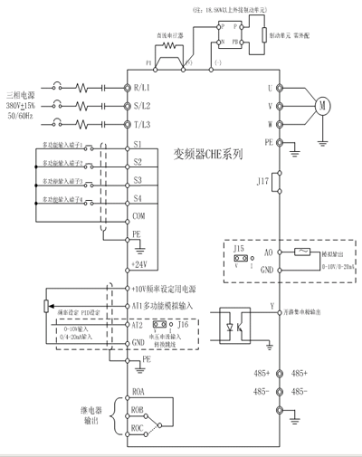 3、指令通道方式:操作麵板、端子控製、遠程通訊控製