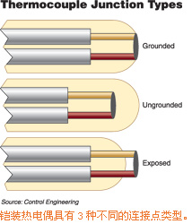 盡管已經使用了80多年,但熱電偶的選擇及應用仍使很多用戶感到困惑。我們這裏介紹一些有關熱電偶的基本知識。 熱電偶是兩種不同的導體連接在一起形成的,當測量及參考連接點分別處於不同溫度上時即產生出所謂的熱電磁力(EMF)。 連接點用途 測量連接點是處於被測溫度上的熱電偶連接點部分。 參考連接點則是保持在一已知溫度上,或溫度變化能自動補償的熱電偶連接點部分。 注:在常規工業應用中,熱電偶元件一般端接在接頭上;但參考連接點卻很少位於接頭上,而是利用適當的熱電偶延伸線來轉接到溫度比較穩定的被控環境中。 連接點類型 接殼式熱電偶連接點與探針壁物理連接(焊接),這能實現很好的熱傳輸--即從外部通過探針壁將熱量傳至熱電偶連接點。建議用接殼式熱電偶來測量靜態或流動腐蝕性氣體與液體的溫度,以及一些高壓應用。 在zai絕jue緣yuan式shi熱re電dian偶ou中zhong,熱re電dian偶ou連lian接jie點dian與yu探tan針zhen壁bi分fen開kai並bing由you一yi種zhong軟ruan性xing粉fen末mo包bao圍wei。雖sui然ran絕jue緣yuan式shi熱re電dian偶ou的de響xiang應ying速su度du比bi接jie殼ke式shi熱re電dian偶ou的de響xiang應ying速su度du要yao慢man,但dan它ta能neng提ti供gong電dian絕jue緣yuan。建jian議yi使shi用yong絕jue緣yuan式shi熱re電dian偶ou來lai測ce量liang腐fu蝕shi性xing環huan境jing,可ke理li想xiang地di通tong過guo護hu套tao屏ping蔽bi來lai將jiang熱re電dian偶ou與yu周zhou圍wei環huan境jing完wan全quan電dian絕jue緣yuan。 露端式熱電偶允許連接點頂端深入到周圍環境中,這種類型可提供最佳的響應時間,但僅限於在非腐蝕、非危險及非加壓應用中使用。 響應時間 響應時間以時間常數來表示,時間常數定義為傳感器在被控環境中在初始值和最終值之間改變63.2%所需的時間。露端式熱電偶具有最快的響應速度,而且探針護套直徑越小,則響應速度就越快,但其最大允許測量溫度也就越低。 延伸線 熱(re)電(dian)偶(ou)延(yan)伸(shen)線(xian)是(shi)一(yi)對(dui)具(ju)有(you)與(yu)其(qi)相(xiang)連(lian)熱(re)電(dian)偶(ou)相(xiang)同(tong)溫(wen)度(du)電(dian)磁(ci)頻(pin)率(lv)特(te)征(zheng)的(de)線(xian)。當(dang)連(lian)接(jie)合(he)適(shi)時(shi),延(yan)伸(shen)線(xian)將(jiang)參(can)考(kao)連(lian)接(jie)點(dian)從(cong)熱(re)電(dian)偶(ou)轉(zhuan)接(jie)至(zhi)線(xian)的(de)另(ling)一(yi)端(duan),而(er)這(zhe)一(yi)端(duan)通(tong)常(chang)位(wei)於(yu)被(bei)控(kong)環(huan)境(jing)中(zhong)。 選擇熱電偶 選擇熱電偶時需考慮下列因素: ●被測溫度範圍 ●所需響應時間 ● 連接點類型 ● 熱電偶或護套材料的抗化學腐蝕能力 ● 抗磨損或抗振動能力 ● 安裝及限製要求等 要了解更多熱電偶的信息,請訪 www.controleng.com,可從中獲得ISA-MC96.1-1982標準--“溫度測量熱電偶”的內容,和/或訪問 www.omega.com/techref/themointro.html 。