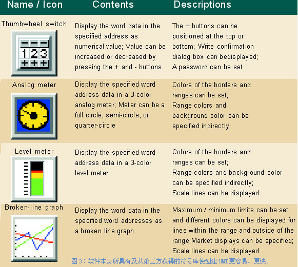 ActiveX控製使用戶很容易用他們自己的HMIlaiwanchenggengduodegongzuo。zhexiebaohantuxingzujianderongqikeyonglaixianshihuoyunxingguocheng。tamenkecongxuduolaiyuanshangdedao,bingkeyongzuoyunxuyonghuqiyonghuoyunxingdisanfangchengxudeqiaoliang。ActiveX控製可用於數據庫訪問、告警、基本趨勢及更多。 如果腳本語言具有足夠綜合的功能,則大多數應用可以隻使用腳本來進行構建,因為你並非總是需要編程,Wonderware公司可視化產品經理Keith Jones解釋說,但每一種應用都需要有一定數量的定製。“因為任何一種操作都需要增添其自己的畫麵及組件”,他說,“所以你總是需要編製少量的腳本,即使它是一行用來在你按下按鈕時啟動一個應用這樣簡單的指令。Wonderware公司提供的InTouch就采用了通常比編程更易於使用的腳本語言”。 InTouch被設計用來為操作員及管理人員提供可接近過程的工廠可視化,並與工廠控製設備進行接口和連接。“用戶可配置使他能看見過程並與其進行交互的任何東西。如果用戶想要轉動一條傳送帶,則他可使用InTouch中的WindowMaker(窗口產生器)laizijiwancheng,huozhecongxianyoukuzhongquchuyigezheyangdechengxu,jintianyouhenduozheyangdekukeyishiyong。nikeyijiangyigexiangmutuofangdaonideyingyongzhong,bingjiangtayujigeI/O點或標簽進行掛鉤,這樣,當傳送帶活動動時它也跟著移動”。 InTouch軟件的SymbolFactory(符號工廠)擁有3000條項目,從簡單的管子到熔爐等。而第三方供應商則能提供數千條以上的項目。 當需要更多東西時 與容易用最少的編程來創建應用同樣重要的是,在需要時要能對應用進行擴展。“沒有哪種現成的HMI軟件可滿足所有用戶的需求”,Rockwell Software HMI產品業務經理Pradeep David承認,“因此我們所有的產品都允許使用VB,因為我們嵌入了Visual Basic for Applications (VBA)。例如鋼鐵行業中的應用經常會使用計算,而VB則能提供擴展HMI所需的工具。在我們這種情況下,如果你想要完成比我們的HMI所提供的現成功能更多的事情,則RSView擁有能使你通過VBA來創建標簽/屏幕以及從外部修改HMI行為的對象模型。這是一種使HMI能完成起初並未賦予它的某些功能的強大而有效的方法”。 誠然,人們要求HMI軟件能做更多的事情,但關鍵在於它如何通過自動功能以及為用戶提供增加特性來完成這些事情。National Instruments公司的LabVIEW平台經理Norma Dorst給出了這樣的評述:“靈活的軟件使係統集成盡可能容易進行,它必須在最底層實現I/O集成,亦即從PLC及儀表到DAQ係統等,HMI都必須能與這一層進行集成”。
