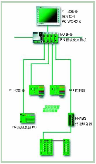 圖4:PROFINET I/O 控製器 ILC 370 PN 2TX-IB是(shi)一(yi)款(kuan)高(gao)性(xing)能(neng)控(kong)製(zhi)器(qi),不(bu)僅(jin)有(you)著(zhe)極(ji)高(gao)的(de)數(shu)據(ju)處(chu)理(li)速(su)度(du),還(hai)具(ju)有(you)更(geng)多(duo)的(de)程(cheng)序(xu)及(ji)數(shu)據(ju)存(cun)儲(chu)空(kong)間(jian),因(yin)此(ci)可(ke)以(yi)滿(man)足(zu)不(bu)斷(duan)提(ti)高(gao)的(de)控(kong)製(zhi)性(xing)能(neng)需(xu)求(qiu)。控(kong)製(zhi)器(qi)可(ke)以(yi)使(shi)用(yong)符(fu)合(he)IEC 61131-3指令的開發工具PC WorX 5進行設置和編程,數據可以通過AX OPC servers進行交換,並且可以實現控製器與上位機之間的通訊,與任何支持TCP/IP協議的裝置或係統進行數據交換。 PROFINET 現場總線I/O PN耦合器同樣使用獲得歐洲工業設計大獎的Inline係統係列產品模塊化的設計,並且模塊種類不僅包括了模擬量、數字量這些不同模塊,而且還有各種功能模塊。這就可以為工業控製提供―種非常靈活並十分完整控製方案。 ■模塊化的設計:Inline係統的模塊化的I/O、內存及通訊接口可為我們提供了一種即可組態又便於擴展的係統,使我們可以根據需要靈活配置所需的I/O數量,內存容量, 以及通訊網絡,以後當需要進一步擴展係統時,可隨時添加I/O,內存及通訊接口。 ■帶電插拔(熱插拔):Inline允許用戶帶電插拔係統中的任何I/O模mo塊kuai,而er不bu會hui對dui模mo塊kuai造zao成cheng損sun壞huai。這zhe對dui於yu係xi統tong的de維wei護hu與yu檢jian修xiu有you著zhe很hen大da的de幫bang助zhu,因yin為wei這zhe樣yang用yong戶hu就jiu可ke以yi在zai繼ji續xu維wei持chi係xi統tong運yun行xing的de同tong時shi更geng換huan有you故gu障zhang的de模mo塊kuai,而er不bu會hui影ying響xiang整zheng個ge係xi統tong其qi它ta部bu分fen的de正zheng常chang運yun行xing。 ■高速傳送:Inline可以在網絡之間,網絡的鏈路之間以及模塊之間實現信息的高速傳送。 ■高強度的硬件平台:Inline係統采用特殊設計的高強度工業硬件平台,從而可耐受振動,高溫以及各種工業環境下的電氣幹擾。 ■小型化、精致化:所有硬件模塊采取小型化的設計,這使得Inline係統適用於有限的安裝空間。 ■即插即用,籠式彈簧接線技術,接線簡單,可靠,現場條件適應性強,靈活的接線方式和可靠的接觸效果,增強了係統的可靠性和可維護性. ■分布式處理:通過Ethernet和現場總線將處理器連接起來,可以實現分布式處理。 ■分布式I/O:通過Ethernet和現場總線即可將遠離處理器的分布式I/Olianjieqilai。yonghukegenjuxuyaorenyijianggezhonggongnengmokuaizuhedaoyiqi,bingkegenjuxuyaosuishigenghuanzongxianshipeiqiyishiyingbutongzongxianxitonghuogenjuxianchangqingkuanggenghuanqitagongnengmokuai。 ■Inline操作係統:該gai操cao作zuo係xi統tong提ti供gong了le真zhen正zheng具ju有you優you先xian級ji的de多duo任ren務wu環huan境jing,允yun許xu用yong戶hu通tong過guo單dan獨du排pai定ding軟ruan件jian組zu件jian來lai滿man足zu自zi己ji的de應ying用yong要yao求qiu。這zhe能neng大da大da提ti高gao處chu理li器qi的de效xiao率lv並bing且qie可ke以yi相xiang對dui降jiang低di成cheng本ben,因yin為wei它ta可ke以yi減jian少shao用yong戶hu對dui整zheng個ge控kong製zhi係xi統tong所suo需xu的de處chu理li器qi數shu量liang的de要yao求qiu。