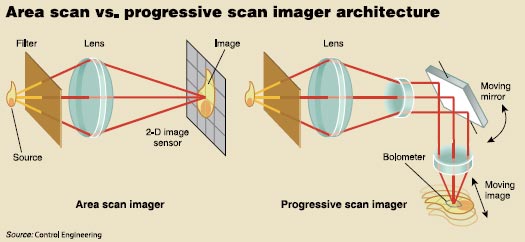 工業測溫技術的發展已經超越預測維護的階段,成為一種主要的傳感技術。此類的過程工業應用包括玻璃製品和塑料包裝薄膜的生產。 隨(sui)著(zhe)可(ke)預(yu)測(ce)設(she)備(bei)維(wei)護(hu)的(de)紅(hong)外(wai)熱(re)象(xiang)應(ying)用(yong)日(ri)趨(qu)白(bai)熱(re)化(hua),工(gong)廠(chang)工(gong)程(cheng)師(shi)們(men)越(yue)來(lai)越(yue)清(qing)楚(chu),關(guan)鍵(jian)傳(chuan)感(gan)器(qi)的(de)優(you)越(yue)性(xing)能(neng)可(ke)以(yi)保(bao)證(zheng)控(kong)製(zhi)係(xi)統(tong)在(zai)我(wo)們(men)的(de)掌(zhang)控(kong)之(zhi)中(zhong)。 hongwairechengxiangjishuhuozherechengxiangjishu,tongguojiancewutifashedehongwaixianlaihuizhiciwutidebiaomianwendutupu。yitaihongwairexiangyijiangbutongdewenduduiyingbutongdeyanse,shirouyannenggoushibiefeichangxiazhaidewenduqujian。suoyouderexiangyizaiqituxiangzhongdoushiyong“偽色彩”,yinweishijidesecaidouweiyuhongwaiqujian,erzheyiqujianneideyanserouyanshiwufashibiede。gengzhongyaodeshi,cileishebeihaijuyoufenxituxiangbingcongtuxiangzhongtiqujingquedekongzhixinxidenengli。 熱成像技術的發展趨勢 曆史上,熱成像技術的發展是依靠將自身適應於新的應用領域,進而鞏固其地位,然後再擴展到其他應用領域。它最早的工業應用始於20世紀80年(nian)代(dai),用(yong)於(yu)電(dian)子(zi)元(yuan)器(qi)件(jian)裝(zhuang)配(pei)的(de)失(shi)效(xiao)分(fen)析(xi)。工(gong)程(cheng)師(shi)分(fen)析(xi)那(na)些(xie)沒(mei)有(you)通(tong)過(guo)電(dian)氣(qi)檢(jian)查(zha)的(de)電(dian)路(lu)板(ban)的(de)熱(re)像(xiang)圖(tu),希(xi)望(wang)對(dui)設(she)計(ji)或(huo)者(zhe)工(gong)藝(yi)過(guo)程(cheng)進(jin)行(xing)修(xiu)改(gai),進(jin)而(er)改(gai)進(jin)生(sheng)產(chan)。