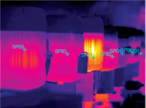 圖3:熱像圖可用來測量一些非熱參數,例如高壓絕緣體的油位。