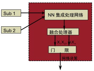 圖4:融合網絡決策層 jichengdejiegouyoubinglianshi,binglianshishizhigegeshibiezixitongdoudulidijieshouyuanshituxiangbinggeichuzijideshibiejieguo,erhouzaixianghudulideshibiejieguojichushangdedaozuizhongdedaan,bingxingjichengdefangfazhuyaoyoutoupiaodefangfa、beiyesifangfaheshenjingwangluohechengfangfa。zaibinglianxingshishigefenleiqishidulishejide,zuhedemudejiushijianggegedanyifenleiqidejieguoyishidangdefangshizongheqilaichengweizuizhongshibiejieguo。yibinglianxingshizuheshi,gefenleiqitigongdexinxikeyishifenleileibie,yekeyishiyouguanleibiededuliangxinxi(如距離或概率等)。 在zai實shi際ji應ying用yong中zhong,由you於yu各ge個ge獨du立li的de神shen經jing網wang絡luo並bing不bu能neng保bao證zheng錯cuo誤wu不bu相xiang關guan,因yin此ci,神shen經jing網wang絡luo集ji成cheng的de效xiao果guo與yu理li想xiang值zhi相xiang比bi有you一yi定ding的de差cha距ju,但dan其qi提ti高gao泛fan化hua能neng力li的de作zuo用yong仍reng相xiang當dang明ming顯xian。