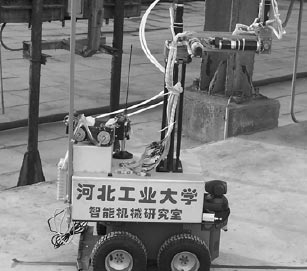 (9) 學習的目的是使E 最小,但由於模糊係統的特殊性,即使所有Yi=Ti,也不會為零,因此,根據不同的要求,需要不同的停止迭代規則。對於多輸入多輸出(MIMO)的模糊規則可以分解為若幹個多輸入單輸出(MISO)的模糊規則。 多個BP網絡的集成 如圖2suoshi,xinhaochulishenjingwangluoyongganduidangechuanganqijiancedaodexinhaojinxingchuli,tiquyouyongxinxi,zuoweirongheshenjingwangluodeshuru,rongheshenjingwangluoduidedaodexinxizaiyidingdecengcishangjinxingronghechuli,yidedaogengquanmian、gengzhunquedexinxi。yejiushisuoshuo,fenbiedajianshibiegezhongzhangaiwudeziwangluo,yibingxingjichengdefangshibagegegetiwangluozuheqilai,keyihuodeyigegaoxingnengdeshibiexitong。meiyigedanyuanBP網絡可以很好的做到圖像預處理、降維等特征提取。對於每一個傳感器的目標向量X的每一分量,可以對應BP神經網絡的每一個輸入,經過訓練集的數據學習應用測試集A、B測試,將結果作為集成網絡的輸入,利用Boosting方法生成集成網絡個體。 移動機器人多傳感器信息融合及對障礙物的識別 子網絡對障礙物的識別過程 如圖3 所示,在HEBUT-II型機器人(圖3所示)上有三大傳感器組,CCD攝像機、紅外傳感 器、超聲波測距傳感器。正如視覺給人類提供了70%以上的所需信息、為人類的正常生活和工作提供了必要保障一樣,視覺係統為移動機器人提供了大量的信息。給移動機器人配備視覺裝置(CCD攝像機結構),可ke以yi使shi移yi動dong機ji器qi人ren在zai行xing走zou時shi能neng夠gou識shi別bie其qi前qian方fang的de障zhang礙ai物wu,這zhe對dui移yi動dong機ji器qi人ren實shi現xian智zhi能neng化hua行xing駛shi具ju有you重zhong要yao意yi義yi。為wei了le使shi移yi動dong機ji器qi人ren在zai一yi個ge不bu確que定ding甚shen至zhi是shi完wan全quan陌mo生sheng的de環huan境jing下xia實shi現xian自zi主zhu式shi導dao航hang,關guan鍵jian在zai於yu視shi覺jiao係xi統tong精jing確que與yu否fou。超chao聲sheng波bo傳chuan感gan器qi以yi其qi價jia格ge低di廉lian、硬ying件jian容rong易yi實shi現xian等deng優you點dian,被bei廣guang泛fan用yong作zuo測ce距ju傳chuan感gan器qi,實shi現xian定ding位wei及ji環huan境jing建jian模mo。超chao聲sheng波bo測ce距ju作zuo為wei輔fu助zhu視shi覺jiao係xi統tong與yu其qi它ta視shi覺jiao配pei合he使shi用yong,可ke實shi現xian整zheng個ge視shi覺jiao功gong能neng。 圖像的形狀輪廓有多種表示方法,Dubois[8]等人首先提出使用一個以形心為基點,等旋轉角度間隔采樣的矢量序列近似描述圖形的邊界,該矢量的模由形心到各邊界點的直線距離決定,但該方法僅限於凸性圖形。Gupta[9]采用類似的徑向投影序列作為多層感知器的輸入分類特征,將等分角度間隔改為沿邊界各象素跟蹤的方法,較Dubois更為精確。本文采用以形心為基點,沿邊界各象素跟蹤的方法,由形心到各邊界點的直線距離構成邊心距序列,經歸一化後作為各輸入目標模式的分類特征。邊心距序列具有一些很重要的性質:周期性, 平移不變性, 旋轉不變性, 比(bi)例(li)性(xing)。邊(bian)心(xin)距(ju)序(xu)列(lie)的(de)上(shang)述(shu)特(te)性(xing)使(shi)其(qi)可(ke)用(yong)於(yu)圖(tu)像(xiang)識(shi)別(bie)。當(dang)物(wu)體(ti)的(de)形(xing)狀(zhuang)通(tong)過(guo)用(yong)邊(bian)心(xin)距(ju)表(biao)示(shi)時(shi),一(yi)個(ge)二(er)維(wei)圖(tu)像(xiang)就(jiu)表(biao)示(shi)成(cheng)了(le)一(yi)個(ge)一(yi)維(wei)的(de)曲(qu)線(xian)波(bo)形(xing)。我(wo)們(men)可(ke)以(yi)用(yong)這(zhe)個(ge)方(fang)法(fa)來(lai)對(dui)實(shi)驗(yan)中(zhong)獲(huo)得(de)的(de)邊(bian)心(xin)距(ju)序(xu)列(lie)與(yu)參(can)考(kao)波(bo)形(xing)作(zuo)比(bi)較(jiao)來(lai)識(shi)別(bie)平(ping)麵(mian)圖(tu)像(xiang)。 超chao聲sheng波bo測ce距ju傳chuan感gan器qi在zai有you效xiao測ce距ju範fan圍wei內nei有you被bei測ce物wu的de話hua,則ze在zai後hou一yi路lu超chao聲sheng波bo束shu發fa出chu之zhi前qian應ying當dang接jie收shou到dao前qian一yi路lu發fa回hui的de反fan射she波bo,否fou則ze認ren為wei前qian一yi路lu無wu被bei測ce物wu。因yin此ci按an有you效xiao測ce距ju範fan圍wei可ke以yi估gu算suan出chu最zui短duan的de脈mai衝chong間jian隔ge發fa送song時shi間jian。為wei了le減jian少shao超chao聲sheng波bo束shu的de影ying響xiang,應ying用yong循xun環huan采cai集ji的de方fang法fa,一yi次ci隻zhi有you一yi個ge超chao聲sheng波bo傳chuan感gan器qi采cai集ji數shu據ju。超chao聲sheng波bo係xi統tong被bei排pai列lie成cheng3×3陣列,這樣,相對於整幅圖像的3×3個區域得到了相應的3×3個距離值。但是,物體的圖像可能隻是占了整幅圖像的一部分,並且隻需要估算9個距離值:相應於所抽取的8個特征點的8個距離值以及形心的距離值。本文的估算是基於特征點和形心與它們所在的區域的關係而采取的一種簡單方法:特征點的距離就估算為其所在區域的距離值。通過坐標轉換獲得了在攝像機坐標係統中的9個點的距離值。 紅外傳感器作為一種重要的被動傳感器,由於有許多獨特的優點,在目標檢測和跟蹤中具有重要的作用[10]。紅外傳感器不向空中輻射任何能量,隻是通過接收目標輻射的熱能對目標進行探測和跟蹤的,因而不易被偵察或定位,具有較強的抗幹擾能力;同時由於目標不可避免地要輻射熱量,從而又為使用紅外傳感器對目標探測和跟蹤創造了條件。在子網絡中采用文獻[11]提出的利用質心及質心偏移測量的紅外目標跟蹤方法,這種方法除具有能精確跟蹤目標的優點外,還具有測量模型是線性的特點,文獻[12]在強度分布未知情況下,利用文獻[13,14,15]的方法估