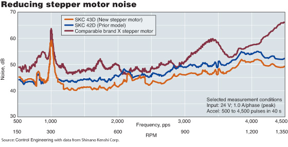 Baldor電氣的實時運動控製器NextMove e100,可以為16個軸進行插值,並且最多可以管理連接到以太網Powerlink上的240個軸。這些軸處理簡單的點對點運動、引導序列、點動控製,以及與步進(伺服)運動係統相關的扭矩需求。 體積和功能問題 Parker Hannifin公司認為體積小和操作簡單是步進係統顯著的優點,價格便宜是步進係統與伺服運動競爭的又一優勢。“步進係統在不增加任何費用的情況下可以做的非常小,”產品經理Marc Feyh說,“是有一些迷你伺服係統,但它們並不那麼小,價格還更貴,且更多部件又需要加以微型化。”開環運行簡單是它的第二個優點。然而,在價格/性能的基礎上競爭變得越來越困難了。 以“合理的價格”繼續改進尺寸並保持性能。Parker指出這種趨勢和昂貴的高端步進係統是有所區別的,它不能和低價伺服係統相競爭。為了滿足尺寸和成本要求,Parke的機電自動化部門正在引入步進驅動/控製器,它是一個微型步進單元,提供了可編程序控製器及集成輸入/輸出端口。 手掌大小的預裝件(1.1 × 1.5 × 4英寸)安裝在Parker的Promech係列線性驅動器上,構成了微型步進運動係統。Park旋轉步進幅度降至NEMA,11,14和17,分別在方形電機的橫截麵轉化為每個麵的尺寸為1.1,1.4,1.70英寸。 根據Shinano Kenshi Corp. (SKC),的研究電機小型化,高密度轉矩和低噪音/振動是保證步進運動控製相關的改進辦法。SKC提出在進行這些方麵的改進時,應控製(降低)步進電機的價格。據稱,新的或重新設計的轉子和定子疊片已經優化了內部空間和NEMA17和13步進係統的結構。 重新設計的步進係統的運行扭矩比前麵的SKC模型高出20%-30%,使用同樣的輸入功率和價格合算的永磁材料,Rex Bergsma,SKC(U.S.)的(de)董(dong)事(shi)長(chang)解(jie)釋(shi)說(shuo),改(gai)進(jin)是(shi)為(wei)轉(zhuan)子(zi)添(tian)加(jia)額(e)外(wai)的(de)永(yong)磁(ci)材(cai)料(liao)。由(you)於(yu)總(zong)空(kong)間(jian)是(shi)固(gu)定(ding)的(de),需(xu)要(yao)移(yi)動(dong)某(mou)個(ge)定(ding)子(zi)的(de)位(wei)置(zhi),即(ji)相(xiang)繞(rao)阻(zu)的(de)地(di)方(fang)。疊(die)片(pian)的(de)重(zhong)新(xin)設(she)計(ji)也(ye)改(gai)進(jin)了(le)SKC新型的STP-430步進電機的轉子和定子的齒形。結果形成一個更強大,更集中的磁場,減少了噪聲(見圖)和”建立時間(阻尼),比前一種模型的速度快了近兩倍,” Bergsma.說。 不僅是旋轉 除了傳統的旋轉步進電機,還存在線性步進電機係統。Baldor Electric公司表示應用和設計工程師對這些線性運動產品越來越感興趣。它引用旋轉電機(伺服)的優點,如減少零部件,幾乎沒有磨損或維修,並且易於結合機器使用。“線性步進電機是非常適合應用在輕負載的情況下,提供優良的開環性能等, 較高的加速度和比旋轉更高的速度,”Baldor的產品經理John Mazurkiewicz說。 Baldor生產各種各樣的直線步進電機,包括單軸,雙軸( X,Y軸)裝置,多軸龍門式,和客戶設計。 該公司的NextMove係列可編程控製器提供適當輸出功率來運行線性和旋轉式步進電機(以及伺服電機)。實時運動控製器是最新的NextMove產品(見照片)。 Oriental Motor公司稱,新的步進電機和驅動係統的開發是“一個提高性能參數和整合各部件的過程”。該過程由好幾個趨勢組成: ■ 高密度轉矩:通過使用更高的能源產品(強度)的釹鐵硼(Nd-Fe-B)稀土永磁材料定期重新設計,加上結構上的改變,如較大的轉子直徑,已經提高了電機轉矩性能。獲益的OM產品包括高轉矩的PV和PK-HT係列混合式步進電機(2相)和CRK係列,五相電機。 ■ 改善步進角精度和傳動平穩性:一種先進的微步進方法是通過控製電流來獲得更高的步進精度。例如,Oriental的RK係列,五相微動驅動器結合一種特殊的ASIC,專有軟件,和電流傳感器在很寬的速度範圍內控製電流。電流傳感器和控製軟件還進一步保證了“平穩驅動功能,”在操作時抑製了振動和噪聲,獨立於驅動器的輸入頻率,Oriental Motor USA工程部經理Nick Johantgen解釋道。固有振動較低的五相步進電機和兩相步進電機是相反的,這樣也利於該情況。”平穩傳動”的產品如PK和CRK係統的五相步進控製。 ■ 更多微型尺寸:“小型化是開環步進電機和其相關驅動器總的發展趨勢”,Johantgen說,“便攜式醫療儀器和工業儀器在很多應用場合中需要使用較小的電機。”為了滿足這一要求,OM已經開發了8in和11in CRK五相電機和11和14in(1.4 in./35 mm)PK兩相步進電機。新的緊湊型CRK微步進驅動器尺寸僅為0.98 x 1.77 x 2.56 in,並且在每一相位最大可控製1.4A CRK電機。 係統和市場分析 Oriental Moto的另一打算是將各種步進電機/驅動器部件組成一個係統解決方案。這包括安裝板,彈性聯軸器,減振器,控製器。“將各部件組成一個完整的係統是為了減少總成本”,Johantgen補充說。它進一步增強和伺服運動的競爭力。 係統也為CRK步進電機提供三種類型的齒輪頭。成本較低的滾銑齒輪有10-35弧度-分間隙(與齒輪齒數比有關);行星齒輪具有廣泛的齒數比和3弧度-分間隙;諧波齒輪基本上消除了所有間隙。 步進運動市場的總體規模,包括商業和汽車行業是相當大的。據Motion Tech Trend s (MTT)最新的市場研究,核心工業部門,工廠自動化(FA),代表了一個相對小的但是穩固的市場, 2006年在北美,步進電機和控製消費大約為156萬美元。FA市場包括機床,機器人係統,各種OEM的生產機器(包括半導體設備,印刷,紡織,塑膠等)。據MTT粗略估計,歐洲和日本分別