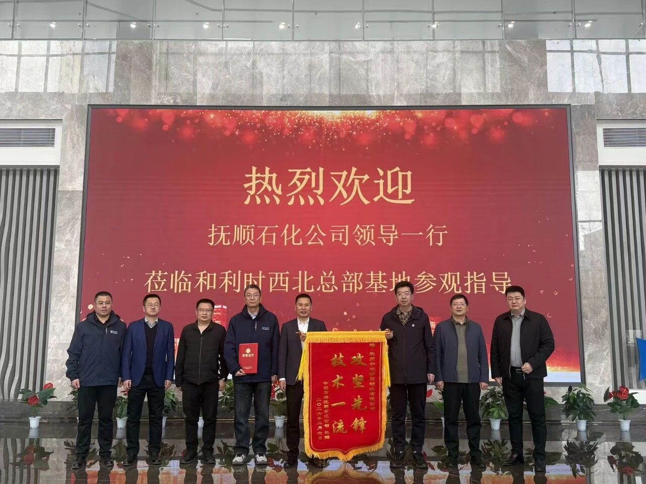 2026年3月20日,中國石油撫順石化公司首席專家高峰、機動處副處長羅友剛、熱電廠副廠長邢小鋒一行蒞臨和利時集團西北總部基地參觀交流。此行中,撫順石化方麵還專程送來錦旗、表揚信與榮譽證書,對和利時成功完成2025年中國石油撫順石化公司熱電項目國產化改造工作給予高度肯定與認可。和利時集團流程工業事業群副總裁湯利友、翟慶明,流程工業事業群東北大區副總經理楊冠宇、趙立軍,重大工程項目總監溫宏偉等領導全程陪同接待。