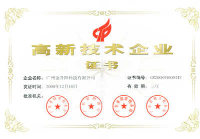 廣州金升陽科技有限公司,近日獲得由廣東省科學技術廳、廣東省財政廳、廣東省國家稅務局、廣東省地方稅務局聯合簽發的“高新技術企業證書”。金升陽被正式認定為廣東省2008年首批國家高新技術企業(證書編號:GR200844000443)。據悉,此次首批通過國家高企認證的企業,廣州市僅百餘家,金升陽即為其中之一。