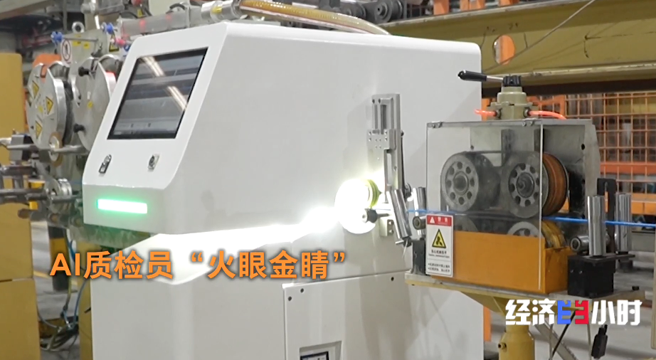 車間裏,有著“火眼金睛”的“AI質檢員”上崗。它的內部3台工業相機形成360°無死角監測,能在光纜以200米/分鍾的速度奔跑時,鎖定0.1毫米級的6類缺陷,識別能力是人類肉眼極限的20倍,檢測成功率達99.99%。
