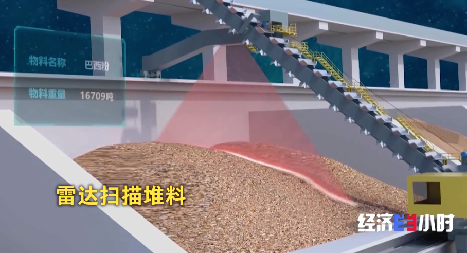 如今,智能盤庫係統當上了“原料管家”。安裝在刮板機一側的毫米波截麵掃描雷達,快速掃描堆料,凹陷凸起都能精準還原。