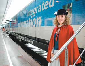 10月,西門子(中國)有限公司自動化與驅動集團的“自動化之光”(英文名Exider)專列經過一年半的歐洲之行後,正式開始了在中國16個城市巡展活動。這輛300米長的專列有14節車廂,展示了先進的應用實例和技術。其內容涵蓋了西門子自動化與驅動集團的4萬多種產品、係統和解決方案,展示了工業和基礎建設領域的未來應用趨勢。新華社發