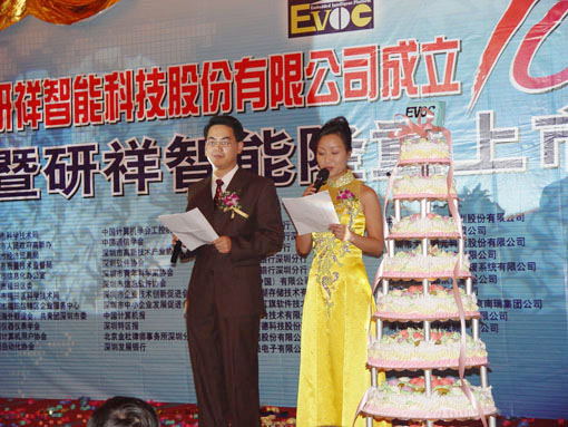 10月28號,在國內IT業(ye)界(jie)享(xiang)有(you)盛(sheng)譽(yu)的(de)研(yan)祥(xiang)智(zhi)能(neng)科(ke)技(ji)股(gu)份(fen)有(you)限(xian)公(gong)司(si)為(wei)慶(qing)祝(zhu)公(gong)司(si)成(cheng)立(li)十(shi)周(zhou)年(nian)暨(ji)成(cheng)功(gong)上(shang)市(shi)在(zai)深(shen)圳(zhen)聖(sheng)廷(ting)苑(yuan)酒(jiu)店(dian)舉(ju)行(xing)了(le)規(gui)模(mo)盛(sheng)大(da)的(de)慶(qing)典(dian)活(huo)動(dong),慶(qing)典(dian)活(huo)動(dong)邀(yao)請(qing)到(dao)了(le)研(yan)祥(xiang)十(shi)年(nian)發(fa)展(zhan)中(zhong)起(qi)到(dao)重(zhong)要(yao)作(zuo)用(yong)的(de)合(he)作(zuo)夥(huo)伴(ban)約(yue)50家企事業單位代表出席,並引起了財經及其它媒體的廣泛注意。深圳市政府官員也到場,並做了精彩的祝賀發言。